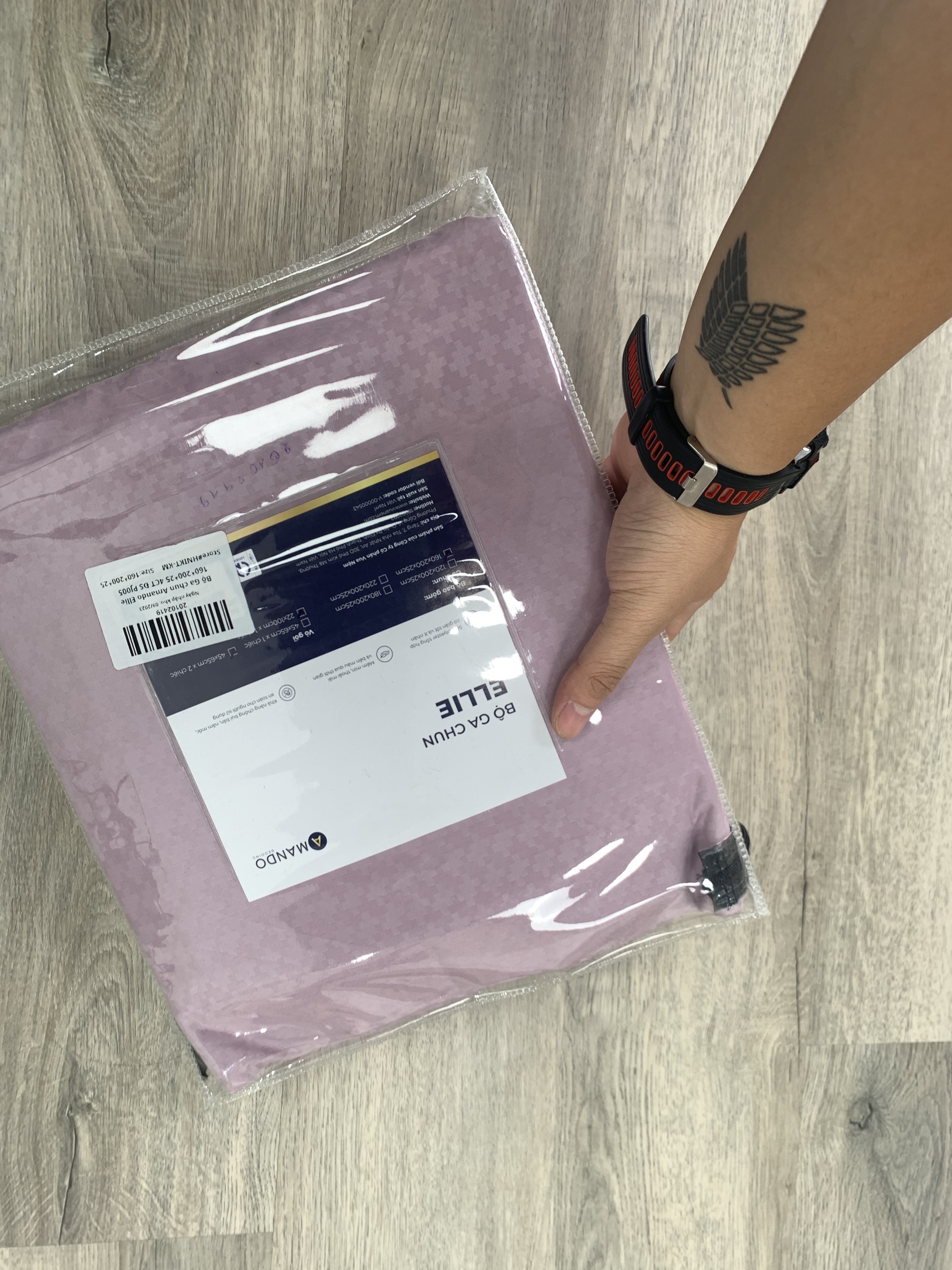 Bộ Ga chun Amando Ellie màu tím ứng dụng kỹ thuật dệt Jacquard từ loại vải Polyester giúp sản phẩm trở nên bền chắc nhưng vẫn mềm mại và đảm bảo không phai màu trong quá trình sử dụng.