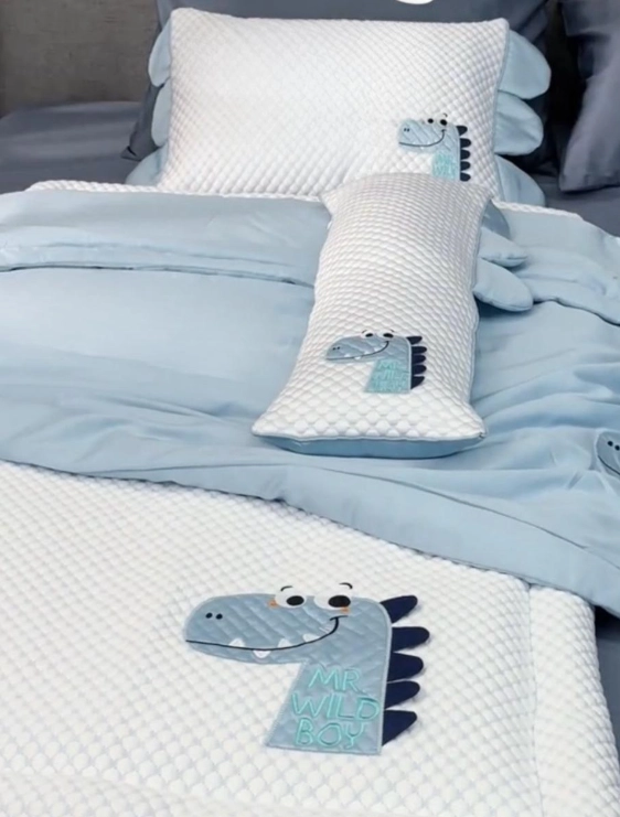 Mình chọn bản Xanh Khủng Long cho thằng cu, phải nói là đúng gu nó luôn 🤩. Màu xanh tươi mát, ga trải nằm siêu mát, hợp cả mùa hè lẫn mùa đông. Có gối ôm dài dài cho nó quấn, nhìn bé nằm ngoan mà cưng xỉu. Chỉ tiếc ko có thêm hoạ tiết khủng long khác để đổi.