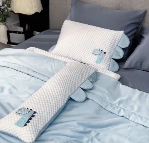 Tấm trải, chăn chần, gối nằm + gối ôm (đủ ruột & vỏ) – gọn nhẹ, phù hợp cả nôi, cũi và giường đơn của bé.