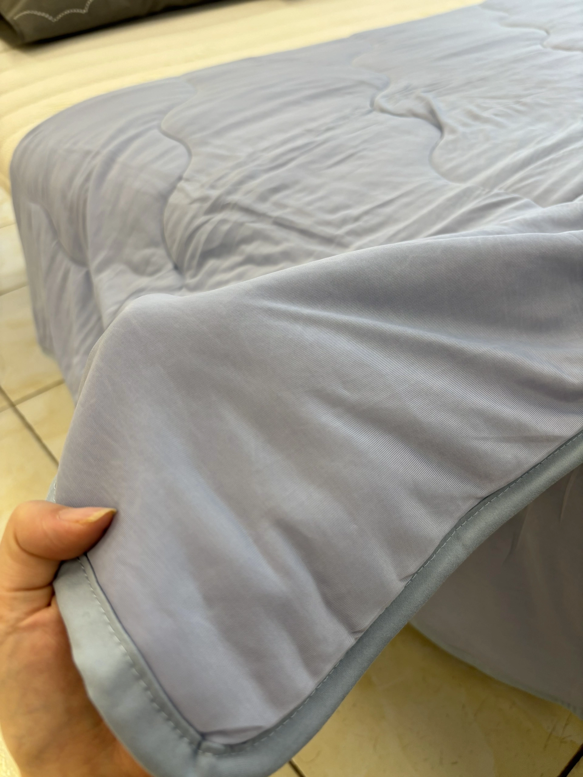 Hãy trải nghiệm trực tiếp để cảm nhận sự mềm mịn đặc biệt từ lõi bông Microfiber. Lớp lõi bông mỏng nhẹ, vừa đủ giữ nhiệt cho cơ thể, bảo vệ bạn khỏi cảm lạnh khi dùng quạt, điều hoà và các thiết bị làm mát. Đồng thời sợi bông có mật độ vừa phải còn giúp không khí lưu thông, không gây tình trạng bí bách. Bạn có thể dễ dàng vệ sinh, giặt giũ và phơi khô chăn làm mát Amando Ice Silk mà không mất quá nhiều thời gian so với các loại chất liệu khác.