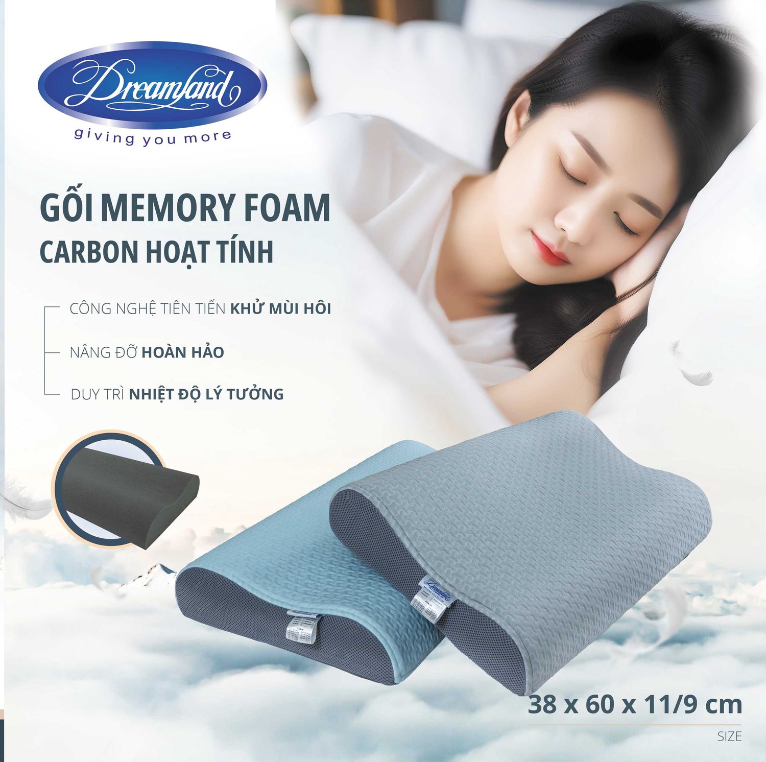 Gối Foam Dreamland Carbon hoạt tính