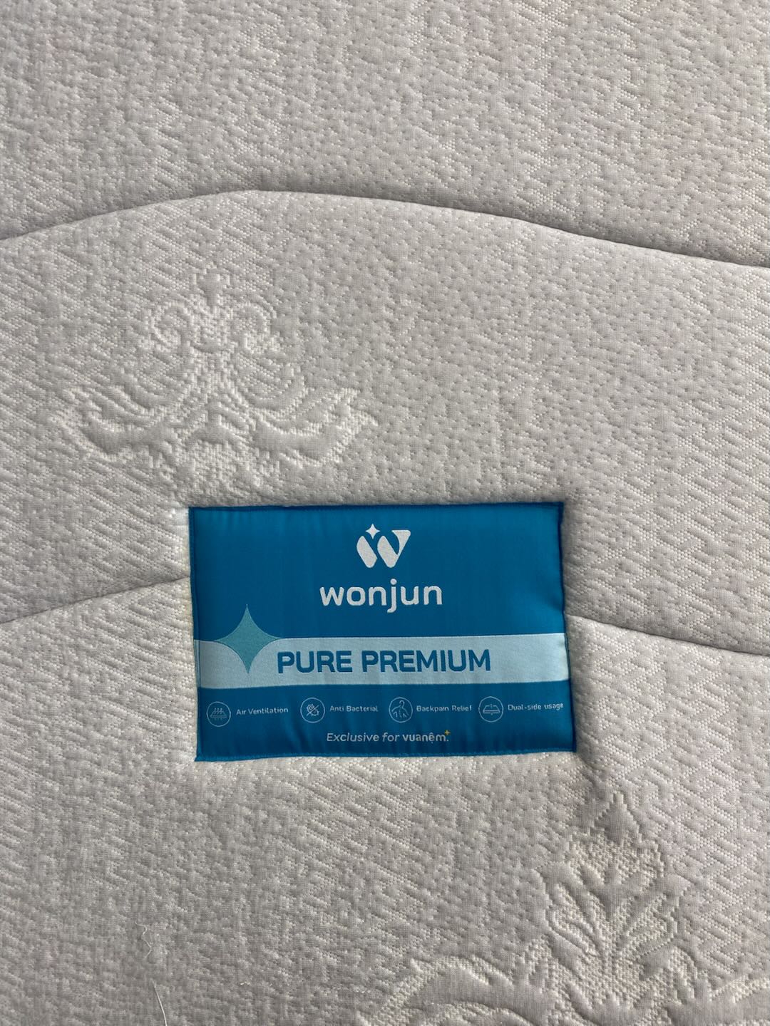 Là phiên bản nâng cấp của các loại nệm bông ép truyền thống, nệm Wonjun Pure Premium chăm sóc giấc ngủ trọn vẹn. Sản phẩm bảo vệ sức khỏe người dùng với đa tầng kháng khuẩn, hạn chế nguy cơ mắc các bệnh đường hô hấp, dị ứng. Nệm cũng hỗ trợ cho các vấn đề xương khớp với bề mặt vững chắc, cá nhân hóa theo nhu cầu người dùng thích nằm trên bề mặt cứng hay mềm êm. Thiết kế tinh tế, sang trọng, Wonjun Pure Premium là lựa chọn sáng giá trong các sản phẩm nệm bông ép.