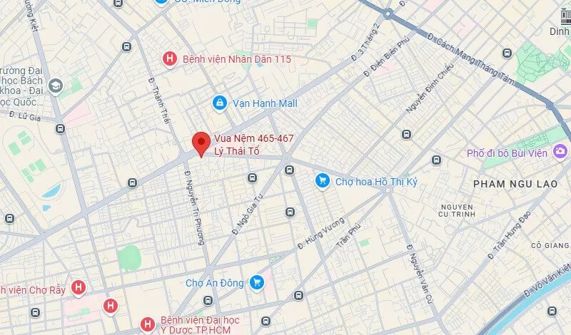 Tọa lạc tại 465–467 Lý Thái Tổ, Phường 9, Quận 10 – tuyến đường trung tâm kết nối nhanh với các quận lân cận như Quận 1, Quận 3, Quận 5, cửa hàng Vua Nệm dễ dàng tiếp cận từ nhiều khu dân cư đông đúc và khu vực thương mại sôi động.