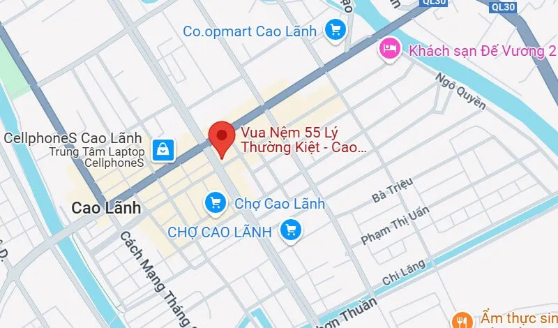Tọa lạc tại vị trí trung tâm thành phố Cao Lãnh, cửa hàng Vua Nệm 55 Lý Thường Kiệt - Cao Lãnh - Đồng Tháp mang đến cho bạn không chỉ đa dạng các sản phẩm nệm chất lượng cao mà còn trải nghiệm mua sắm tiện lợi và dịch vụ chuyên nghiệp.